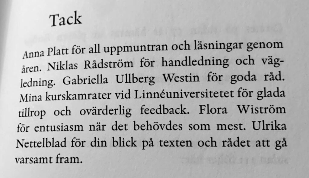 Det blir årets första dag. Jag har druckit kaffe och ätit avocadosmörgåsar i ett kök där jag brukade plugga ryska när jag var sexton, skriva väldigt tonåriga tonårsnoveller med ett språk som var större än innehållet, ett köksbord där jag brukade sitta när jag var sexton och skriva på min första roman. Utanför är snöfallet, jag vet inte ännu om vädret kommer att göra att jag inte kan skjutsa min tonåring till Uppsalakompisarna för kvällens övernattning. Det värker i mitt hjärta men är en del av vardagens små bekymmer.