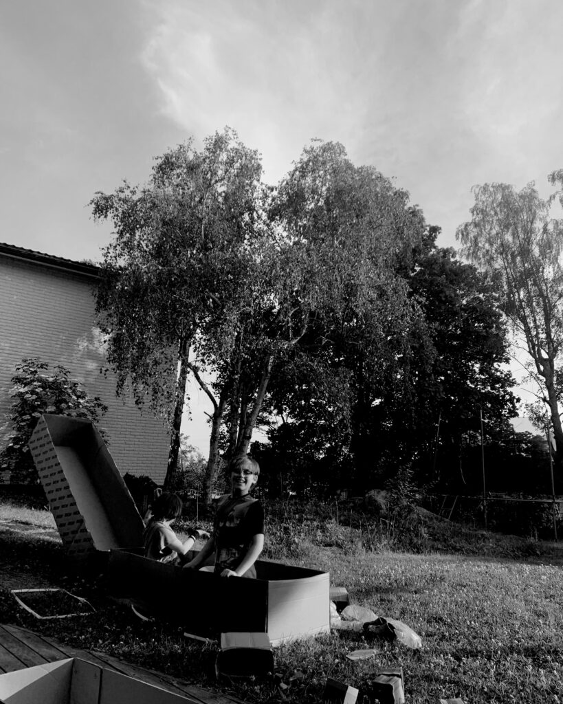 Våra vänner kommer och hjälper oss montera studsmattan. Deras bebis ligger i Storasysterns armar och sover. Det finns inget som är som det här, säger hon.